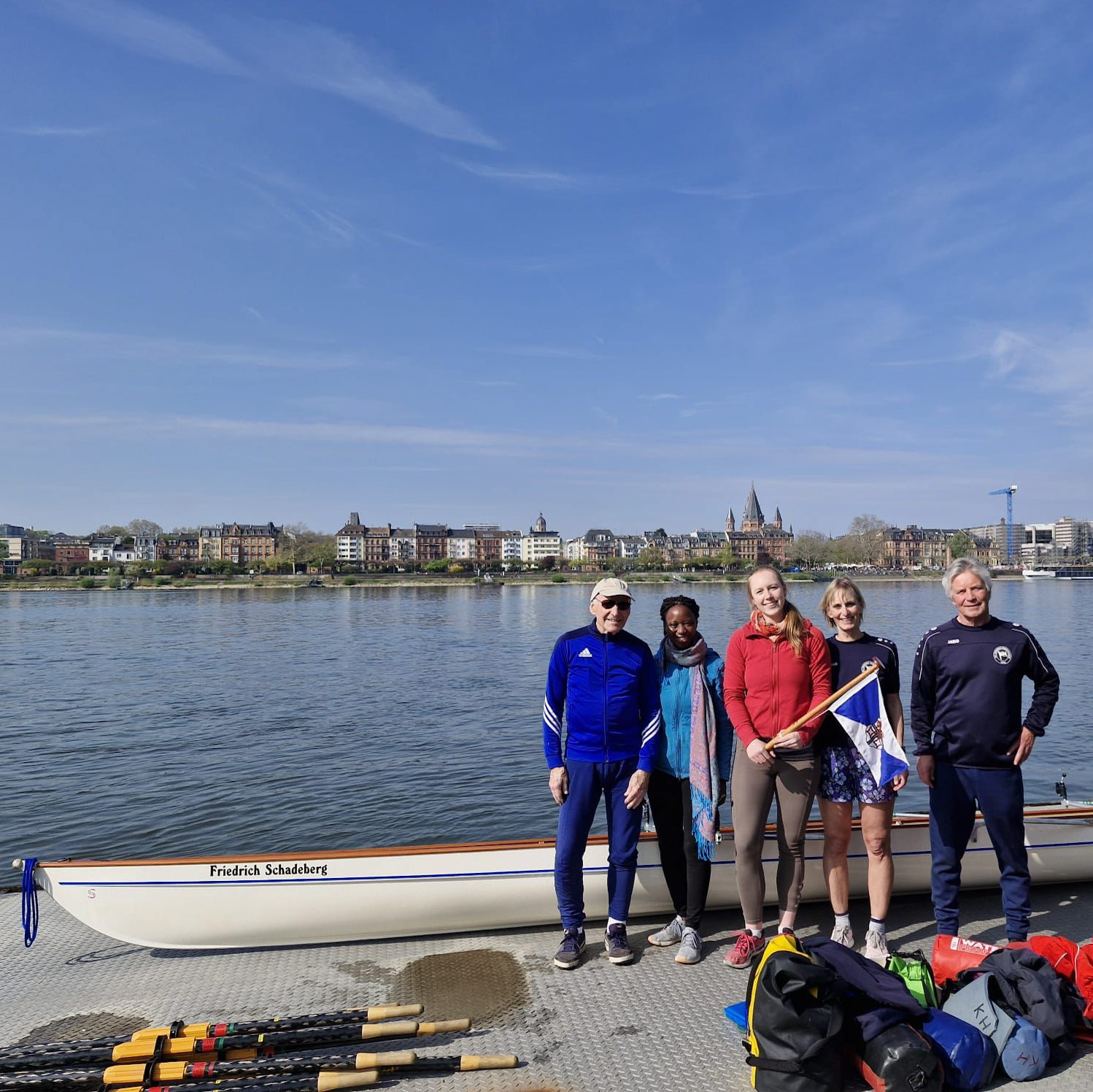 Am Samstag, den 20. April, durfte der 'Rhenus' den Frauentag des Ruderverbandes Rheinland ausrichten. Trotz des regnerischen und windigen Wetters sind wir mit vereinten Kräften mit der FINO, der FRIEDRICH SCHADEBERG und der ANTUNNACUM aufs Wasser und konnten elf Frauen die Verhältnisse bei uns in Andernach zeigen.